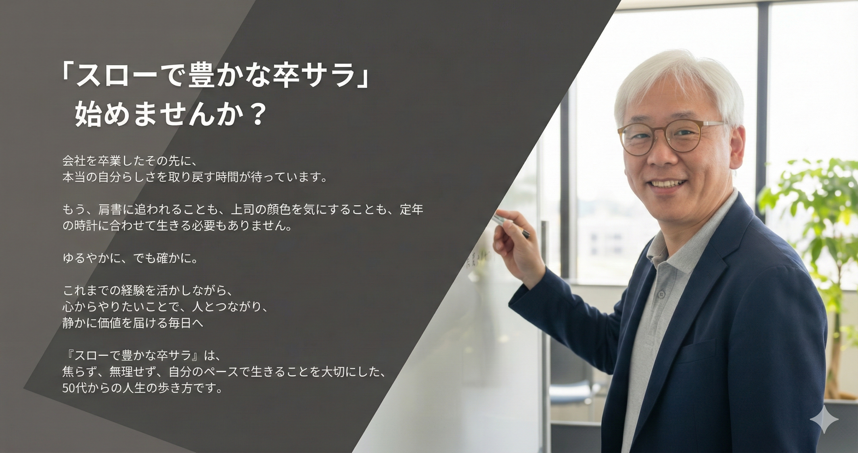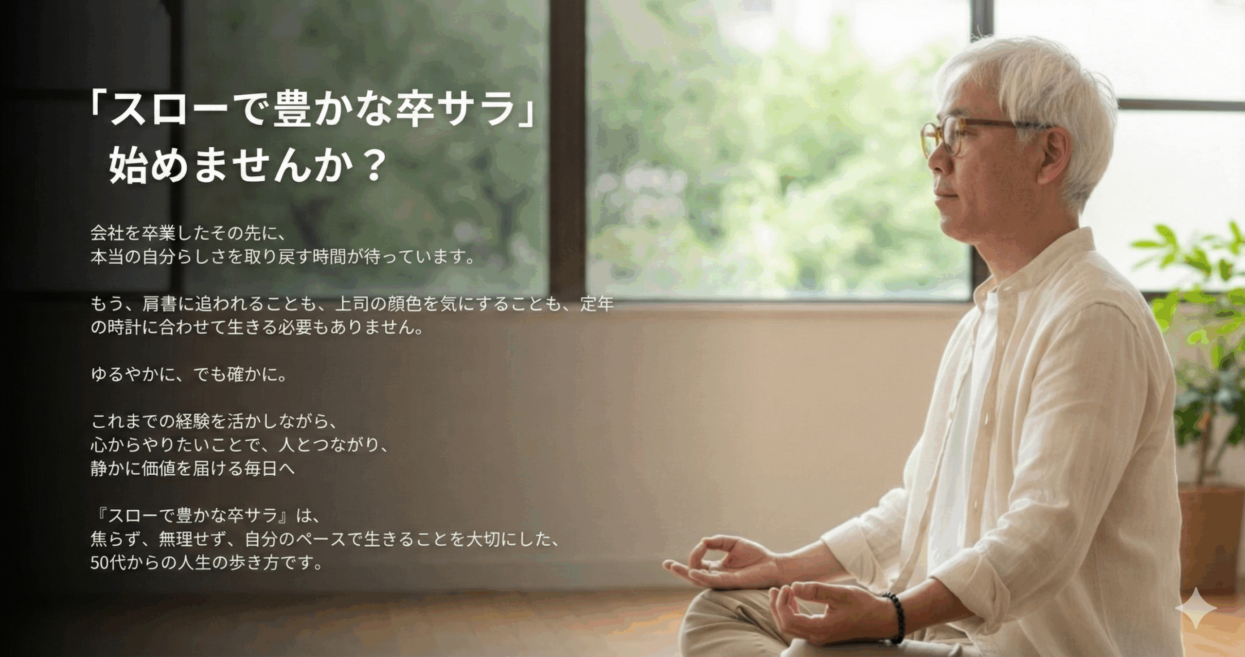 これからは、ただ生きていくだけではなく、自分らしい充実した人生を手に入れるための新たな旅の始まり。