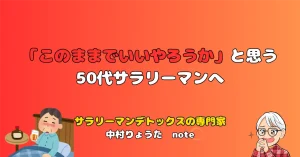 私は31年間サラリーマン生活で、仕事は楽しいこと苦しいことが入り混じりたくさんの人と出会い、良い経験もさせていただきました。だけど、50代になって、適応障害で働けなくなり、自分の人生を自分で生きてきたようで、他人に振り回されて生きてきたことに気がつきました。そして、自分の経験と知識をベースに、人に喜んでもらいながら収入を得られるマイクロビジネスで、今は自分や家族に何かあっても安心できる日常を生きています。