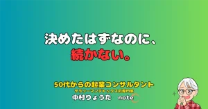 オンラインビジネスの仕組み作りと、稼げるマインドセット構築を支援している中村りょうたです。noteでは、50代の起業がつまずく原因となる“サラリーマン思考”を、日常の出来事をモチーフにお届けしています。