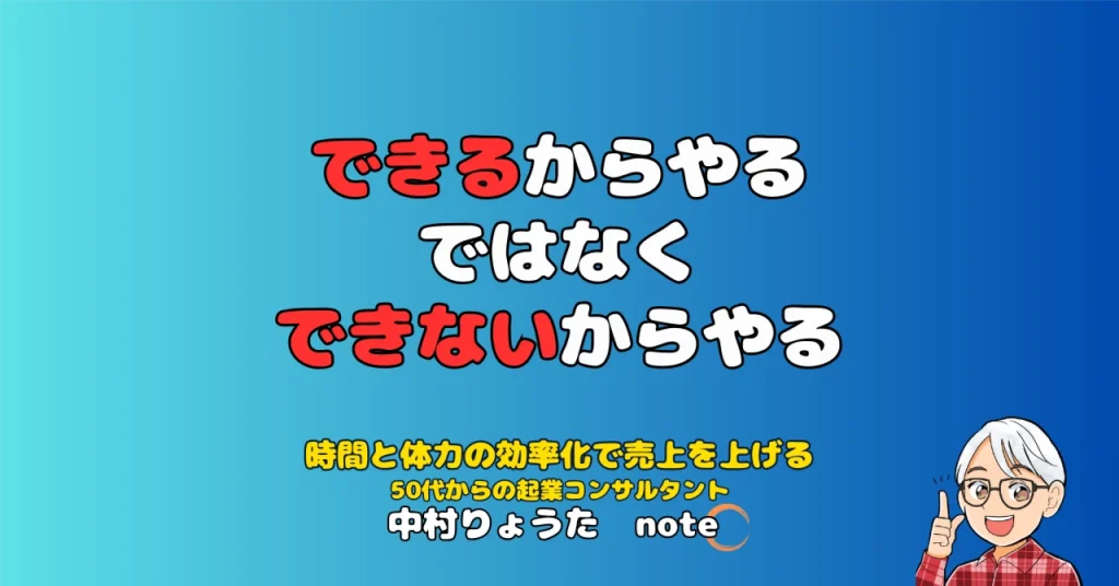オンラインビジネスの仕組み作りと、稼げるマインドセット構築を支援している中村りょうたです。noteでは、50代の起業がつまずく原因となる“サラリーマン思考”を、日常の出来事をモチーフにお届けしています。 続きをみる